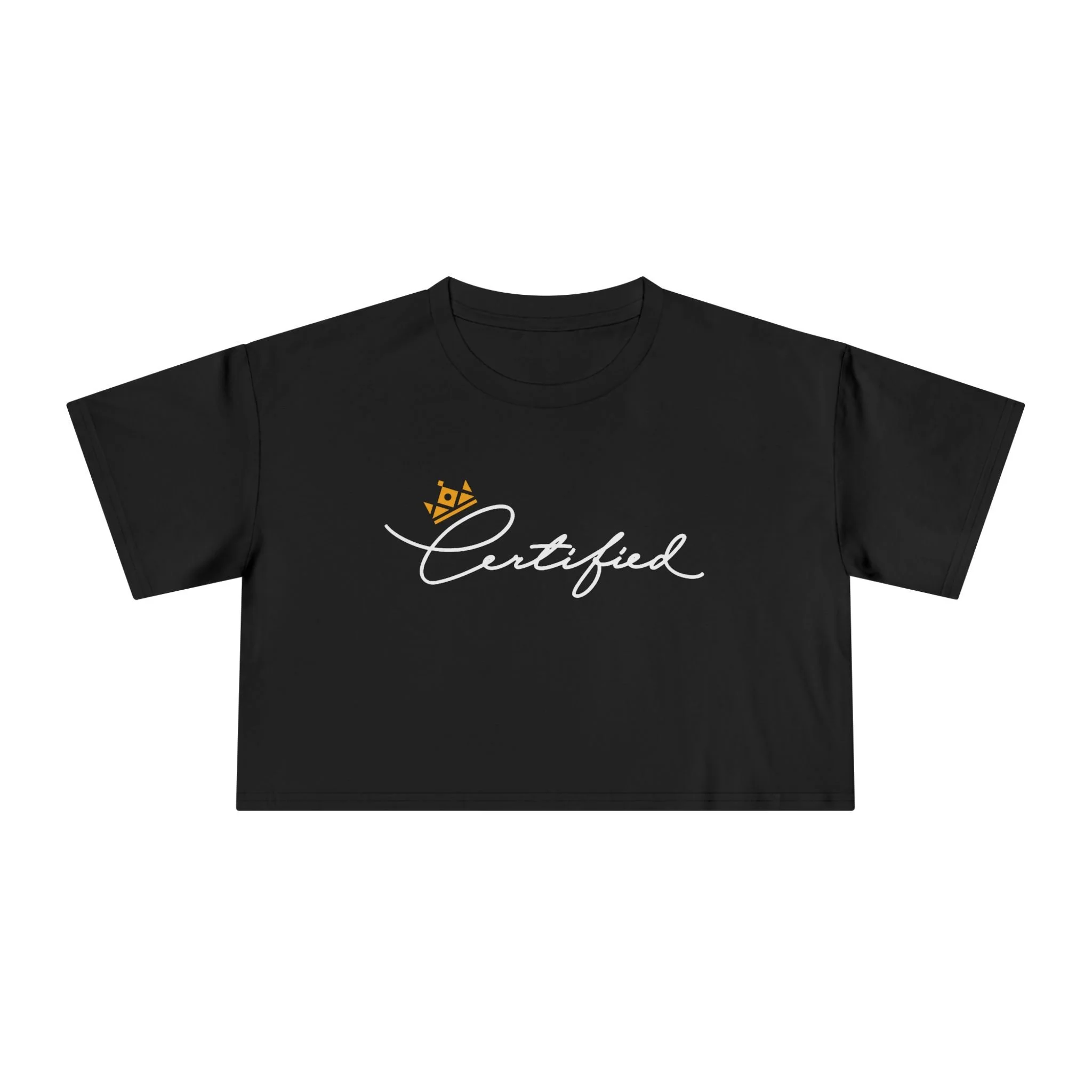 The 'Heart on my sleeve' Certified Crown design with a heart wrapped in barbwire on the sleeve, cupid design on the back, and scrambled certified crown text on the front chest.